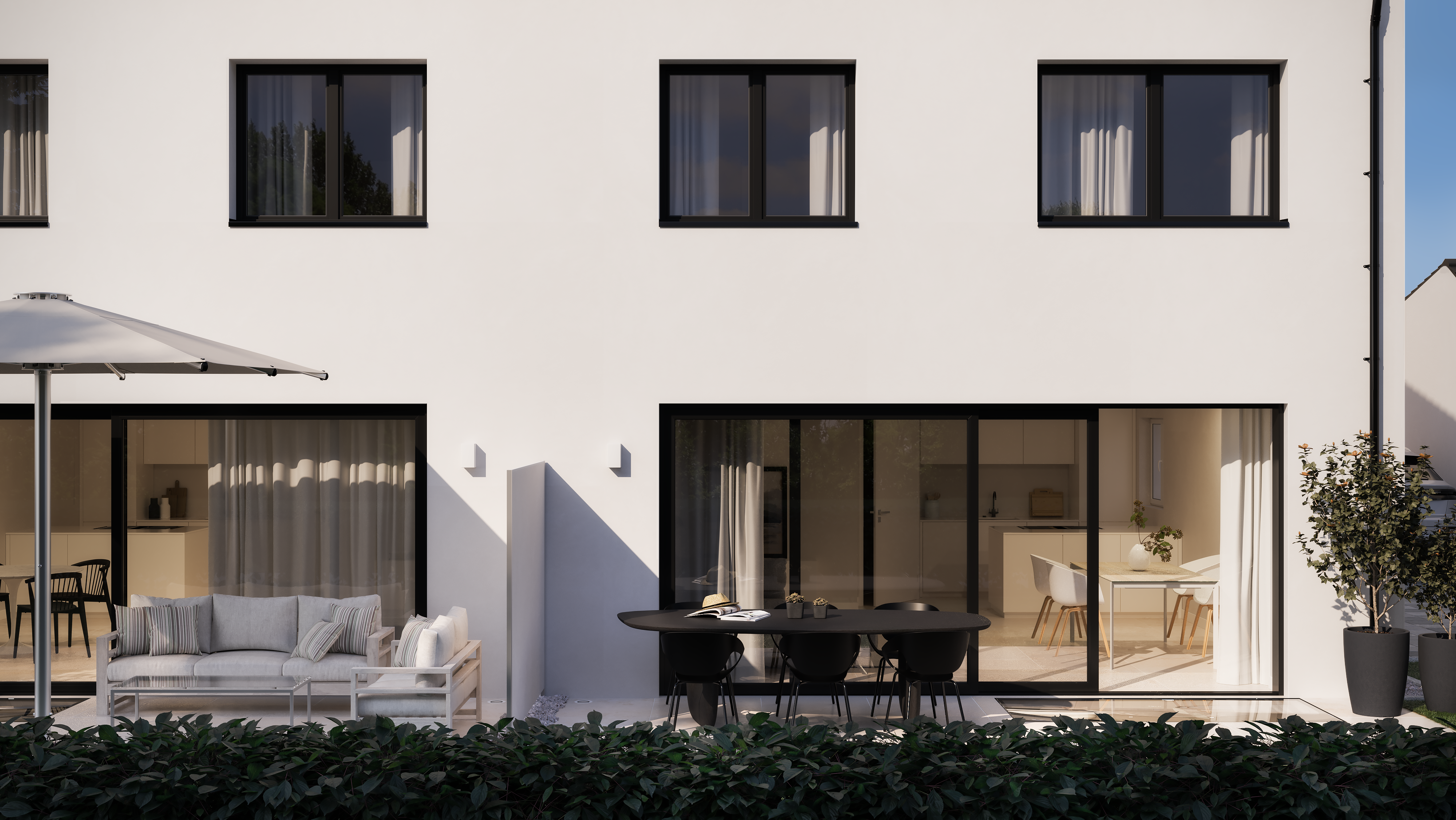 Luxuriöses Reihenendhaus in modernem und puristischem Design, mit integrierter Photovoltaik-Anlage und Batteriespeicher in herrlicher Ortsrandlage in Haimhausen: Hier trifft Funktion auf Schönheit.