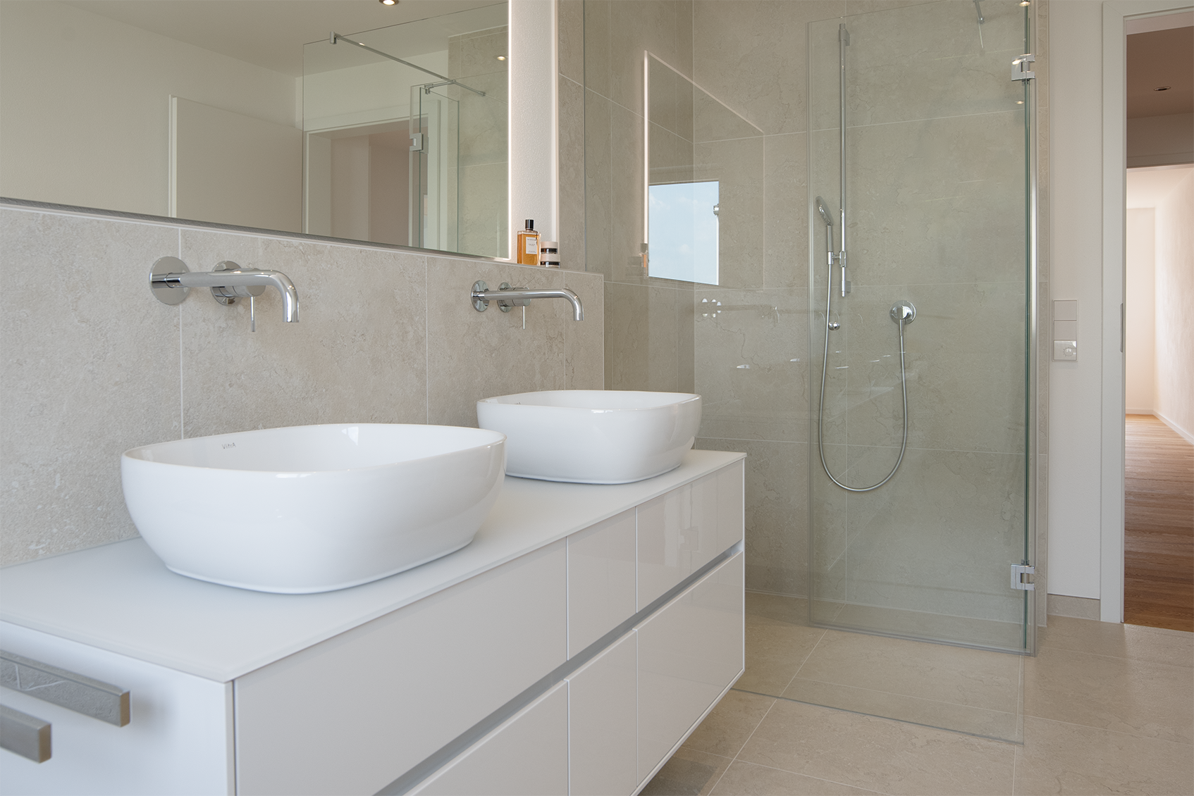 Im gesamten Haus sind alle Wohnräume und auch der Technikraum mit einer Fußbodenheizung ausgestattet, welche mittels einer effizienten Luft-Wasser-Wärmepumpe beheizt wird. Ein dezentrales Lüftungssystem versorgt zudem sämtliche Wohnräume mit Frischluft. Ebenso ist das gesamte Objekt mit einem LAN-Netzwerk ausgestattet und bietet einen Glasfaseranschluss für eine schnelle Internetanbindung mit bis zu 1000 MBit. Flächenbündige, dreifach verglaste Kunststoff/Aluminium Fenster mit verdeckten Beschlägen und einer revolutionären Verriegelungstechnik sowie die traumhafte Hebe-Schiebe-Tür zur Terrasse sind weitere Besonderheiten, welche Sie künftig nicht mehr vermissen möchten.