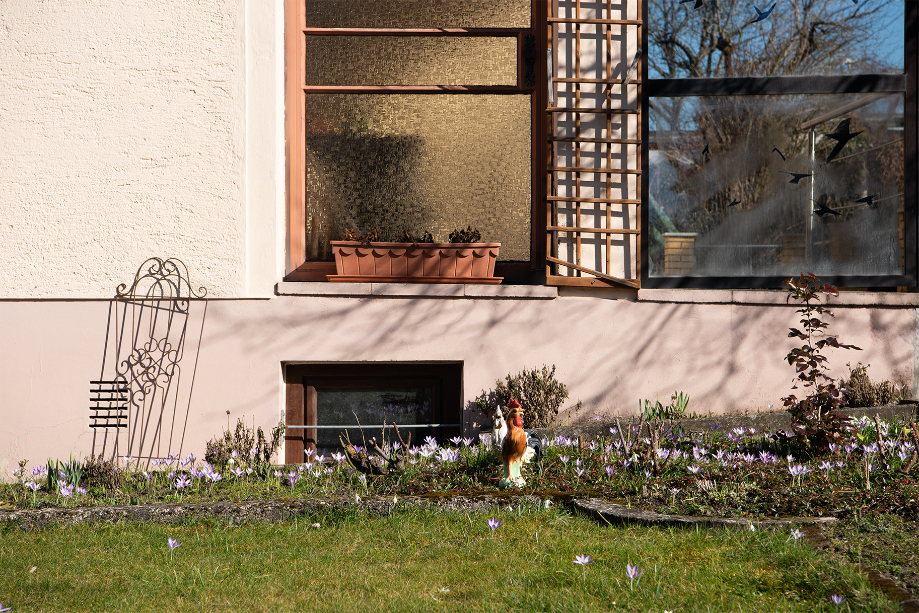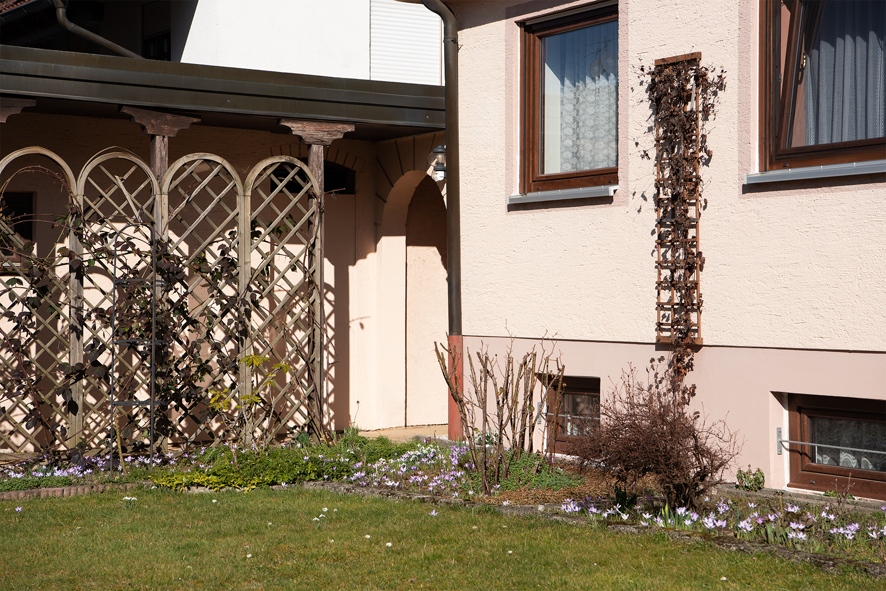 Das Haus in Massivbauweise befindet sich auf einem großzügigen Grundstück inmitten einer idyllischen Gartenanlage und verfügt über eine große Einzelgarage. Entlang des Weges zum Haus begleiten uns liebevoll gepflegte Rosenstöcke, Blumenbeete und leckere Himbeer- und Johannisbeersträucher und geben uns das Gefühl angekommen zu sein.