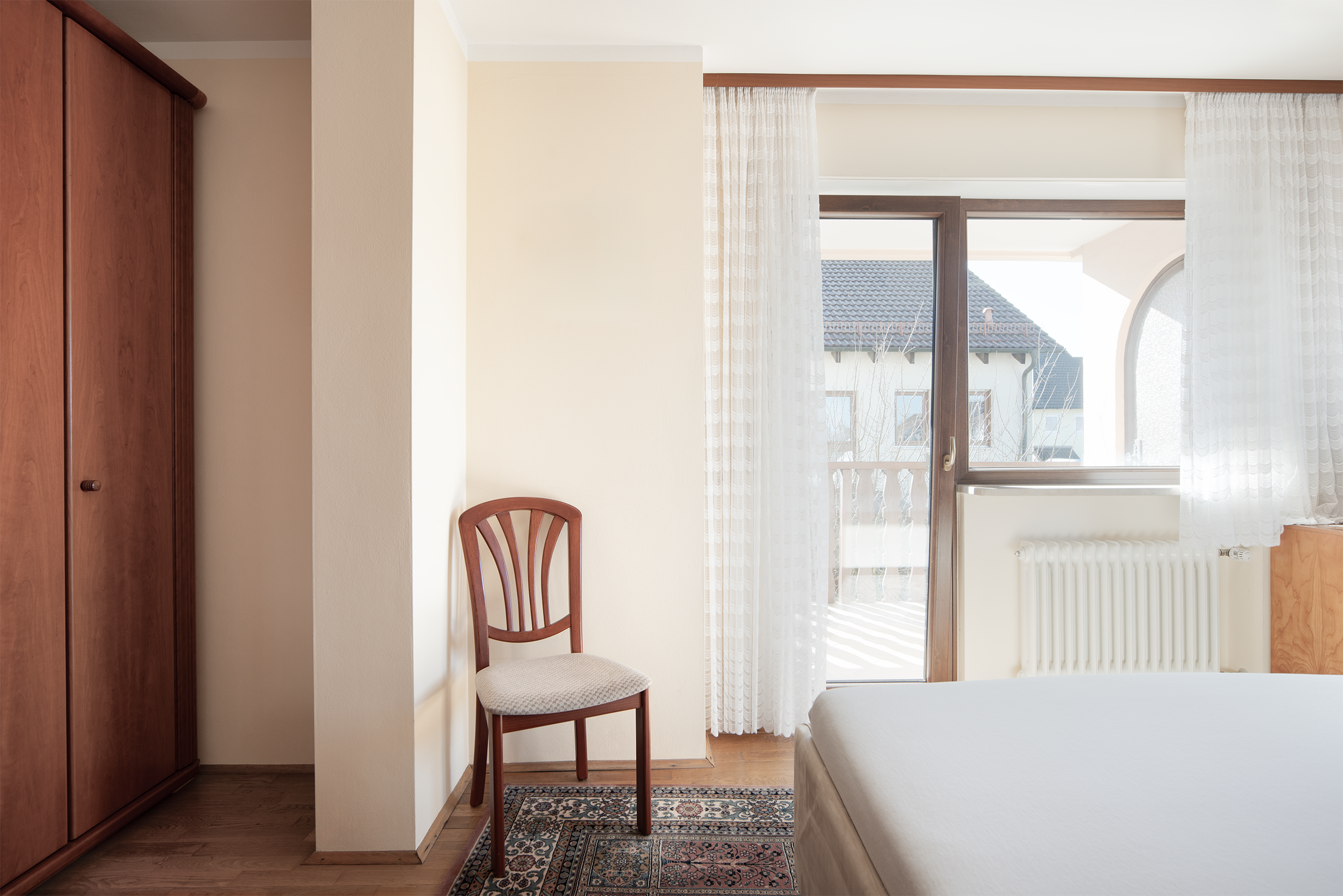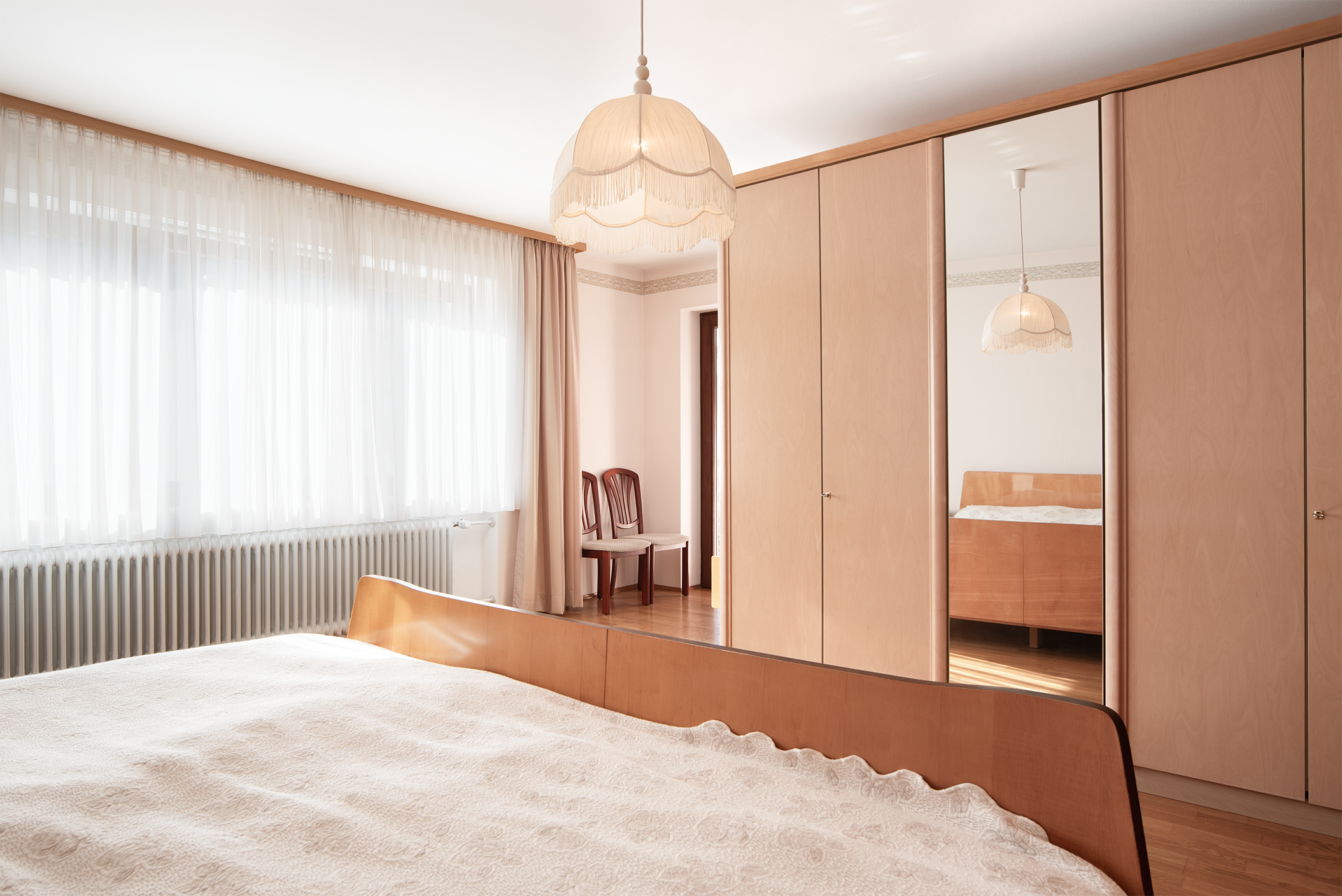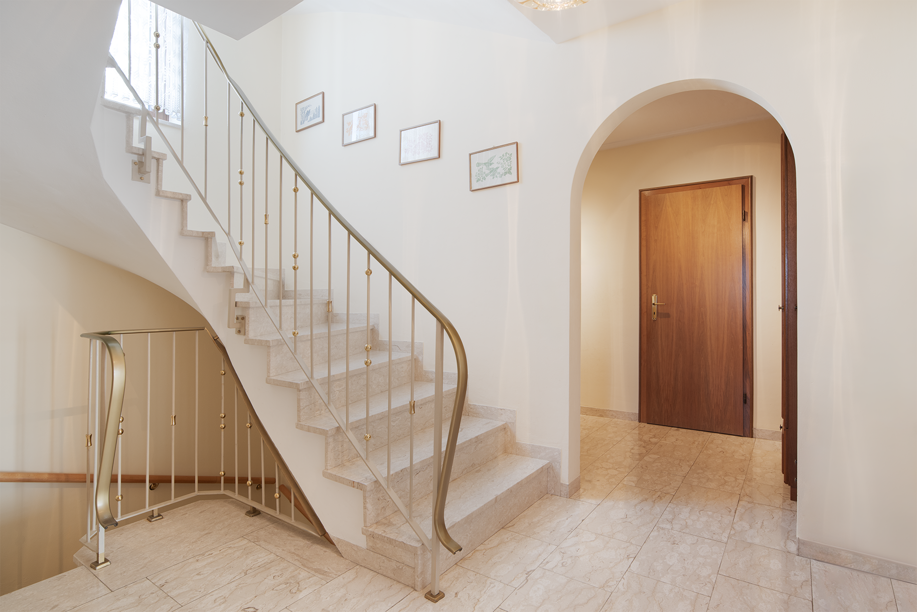 Über die breite Natursteintreppe gelangen wir in die große Diele im Obergeschoss. Auf dieser Etage befinden sich ein weitläufiges Schlafzimmer mit etwa 27 m², sowie zwei große Kinderzimmer mit jeweils rund 17 m². Vom Schlafzimmer und von einem der Kinderzimmer besteht ein Zugang zur Loggia, welche mit einer Grundfläche von über 6 m² den Wohnkomfort erweitert und einen angenehmen Rückzugsort im Freien darstellt. Ebenfalls auf dieser Ebene befindet sich das Tageslichtbadezimmer mit Badewanne, separater Dusche, WC und zwei Waschtischen. Die Ausstattung entspricht überwiegend dem Baujahr und bietet damit eine solide Grundlage, die Raum für eine individuelle und zeitgemäße Weiterentwicklung lässt.