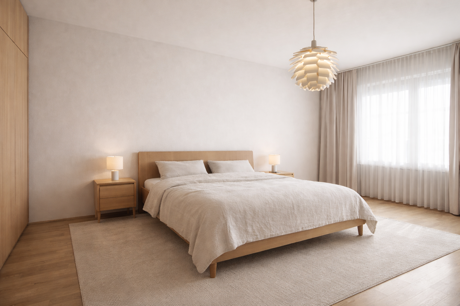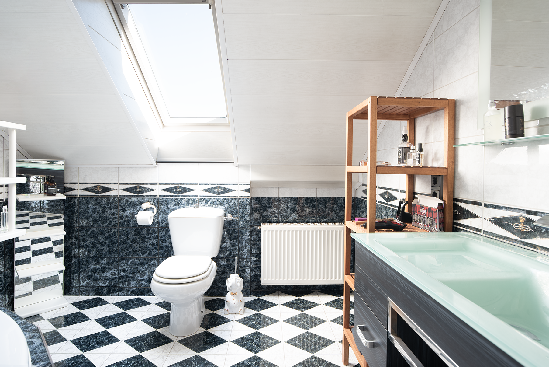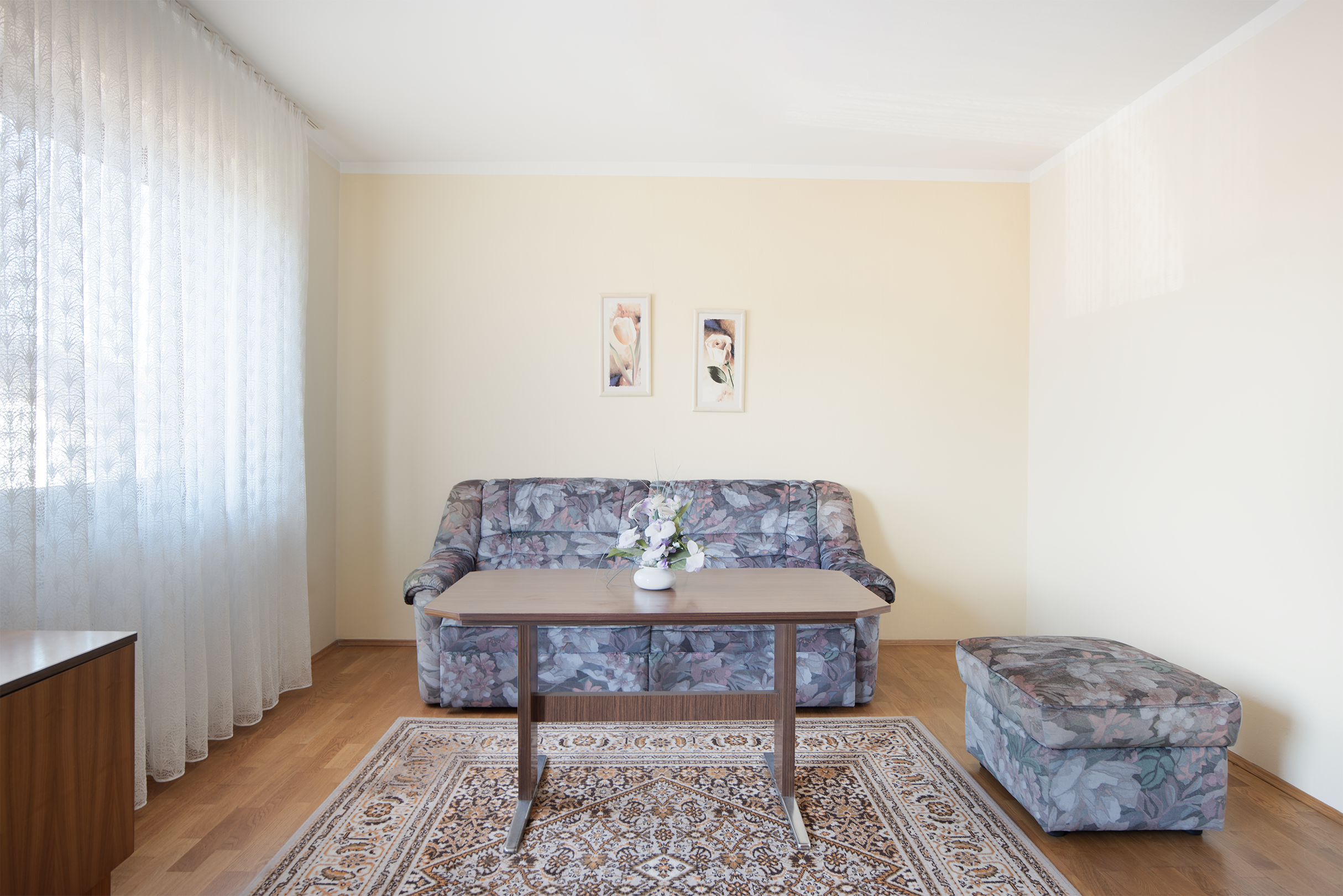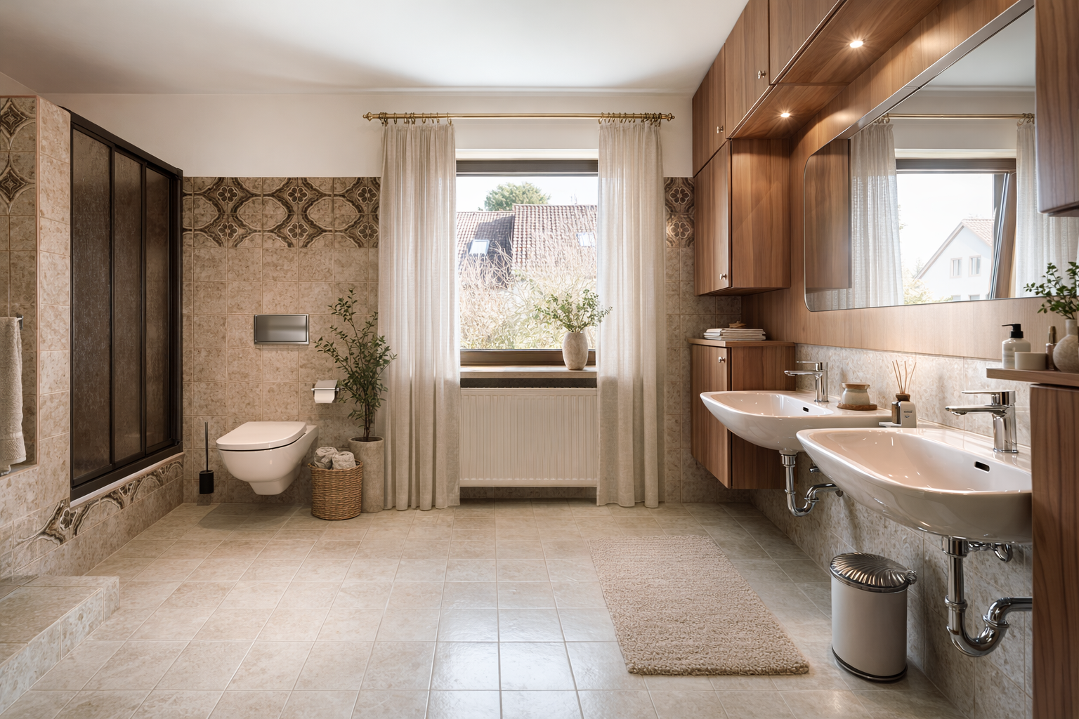 Über die breite Natursteintreppe gelangen wir in die große Diele im Obergeschoss. Auf dieser Etage befinden sich ein weitläufiges Schlafzimmer mit etwa 27 m², sowie zwei große Kinderzimmer mit jeweils rund 17 m². Vom Schlafzimmer und von einem der Kinderzimmer besteht ein Zugang zur Loggia, welche mit einer Grundfläche von über 6 m² den Wohnkomfort erweitert und einen angenehmen Rückzugsort im Freien darstellt. Ebenfalls auf dieser Ebene befindet sich das Tageslichtbadezimmer mit Badewanne, separater Dusche, WC und zwei Waschtischen. Die Ausstattung entspricht überwiegend dem Baujahr und bietet damit eine solide Grundlage, die Raum für eine individuelle und zeitgemäße Weiterentwicklung lässt.