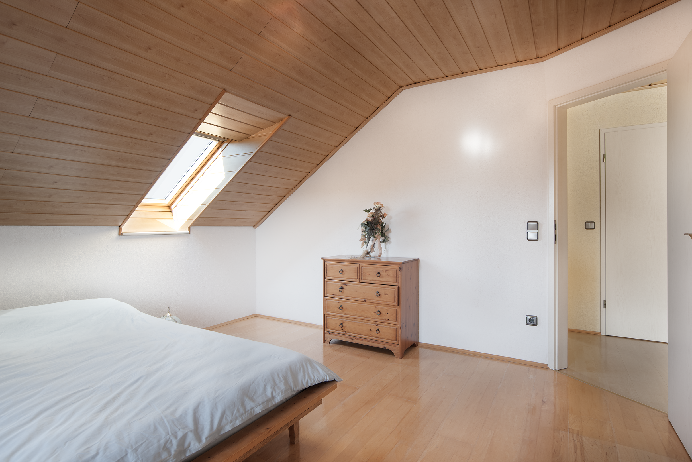 Auch das Dachgeschoss ist bereits ausgebaut und bietet auf etwa 61 m² eine eigene, im Haus integrierte Wohneinheit, die sich ideal als separate Einliegerwohnung für Gäste oder zur Nutzung durch ältere Kinder eignet. Somit verfügt das Dachgeschoss über ein eigenes Duschbad mit Fenster, ebenso wie über eine eigene Küche mit Vorratsraum. Der Wohnbereich mit einer Fläche von rund 24 m² überzeugt durch seine Großzügigkeit und angenehme Offenheit. Ein direkter Zugang zu einer weiteren Loggia unterstreicht den besonderen Wohnkomfort und schafft eine ideale Verbindung zwischen Innen- und Außenbereich. Selbstverständlich verfügt dieser Wohnbereich über ein getrenntes Schlafzimmer und sogar ein kleines Arbeitszimmer ist ebenfalls vorhanden.